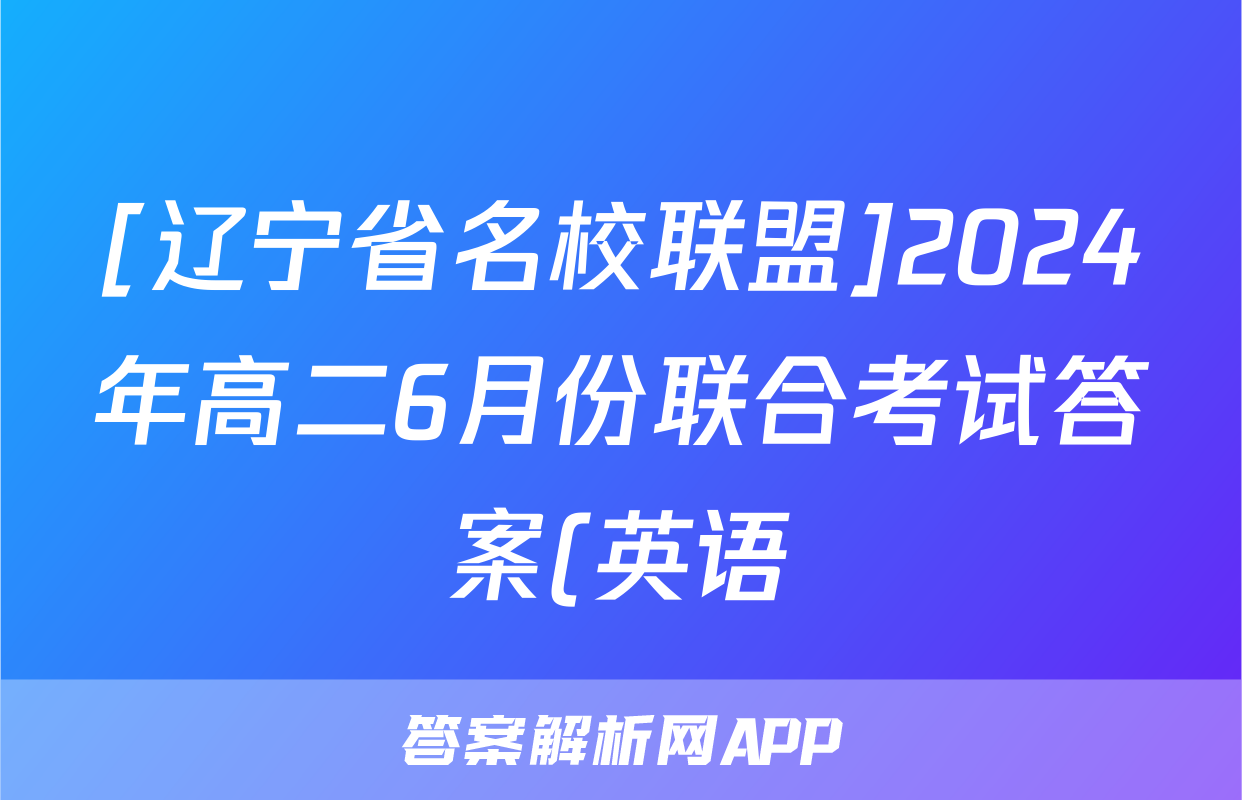 [辽宁省名校联盟]2024年高二6月份联合考试答案(英语)正在持续更新,目前2026天舟高考答案网为大家整理了相关试题及答案,供大家查缺补漏,高效提升成绩。