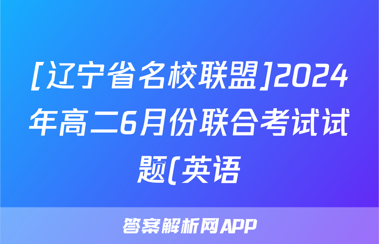 [辽宁省名校联盟]2024年高二6月份联合考试试题(英语)正在持续更新,目前2026天舟高考答案网为大家整理了相关试题及答案,供大家查缺补漏,高效提升成绩。