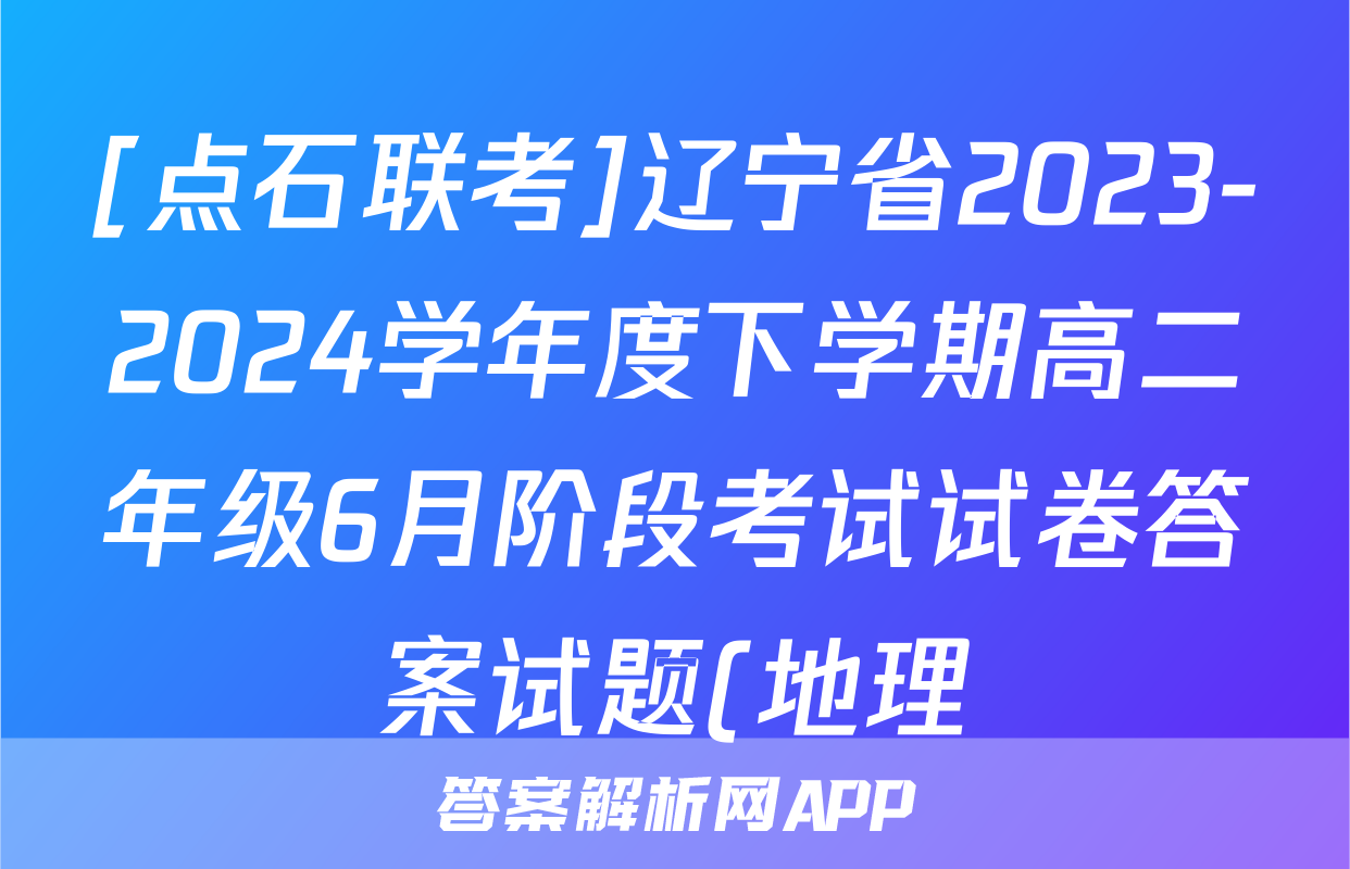 [点石联考]辽宁省2023-2024学年度下学期高二年级6月阶段考试试卷答案试题(地理)正在持续更新,目前2026天舟高考答案网为大家整理了相关试题及答案,供大家查缺补漏,高效提升成绩。