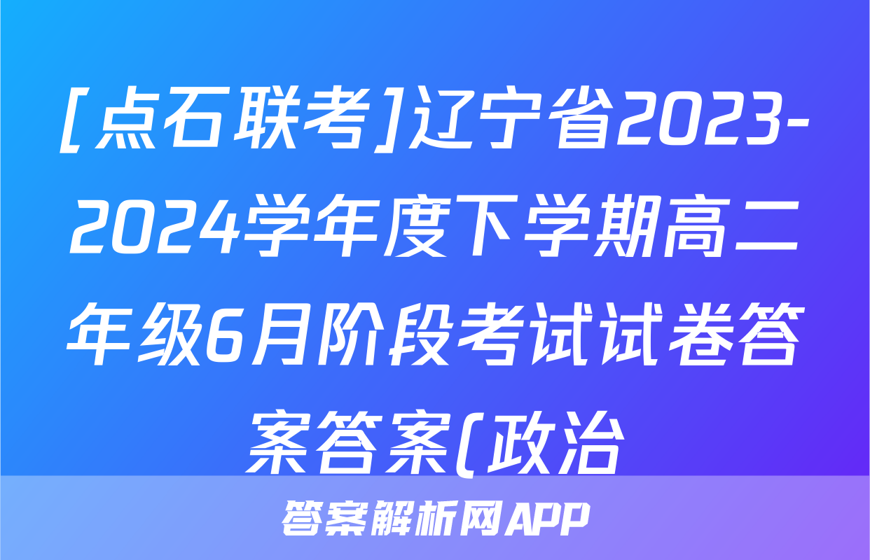 [点石联考]辽宁省2023-2024学年度下学期高二年级6月阶段考试试卷答案答案(政治)正在持续更新,目前2026天舟高考答案网为大家整理了相关试题及答案,供大家查缺补漏,高效提升成绩。