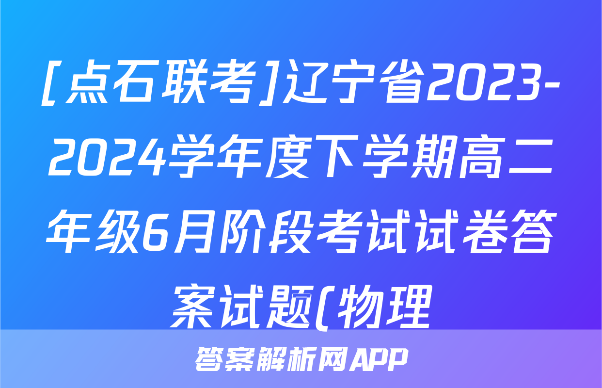 [点石联考]辽宁省2023-2024学年度下学期高二年级6月阶段考试试卷答案试题(物理)正在持续更新,目前2026天舟高考答案网为大家整理了相关试题及答案,供大家查缺补漏,高效提升成绩。