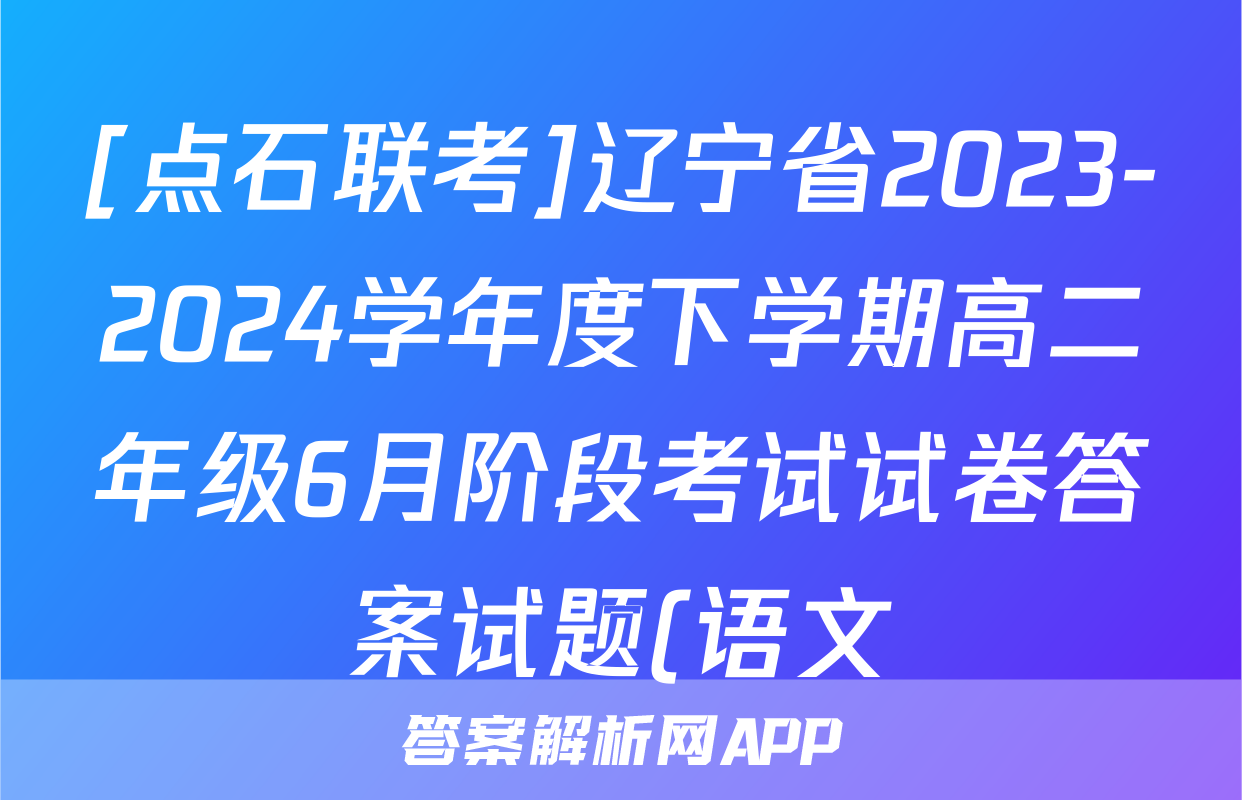 [点石联考]辽宁省2023-2024学年度下学期高二年级6月阶段考试试卷答案试题(语文)正在持续更新,目前2026天舟高考答案网为大家整理了相关试题及答案,供大家查缺补漏,高效提升成绩。