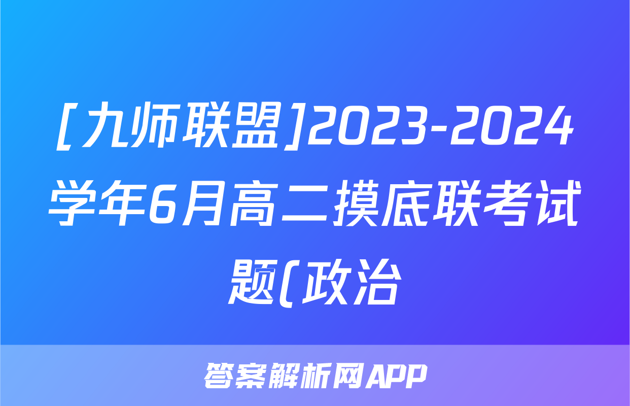 [九师联盟]2023-2024学年6月高二摸底联考试题(政治)正在持续更新,目前2026天舟高考答案网为大家整理了相关试题及答案,供大家查缺补漏,高效提升成绩。