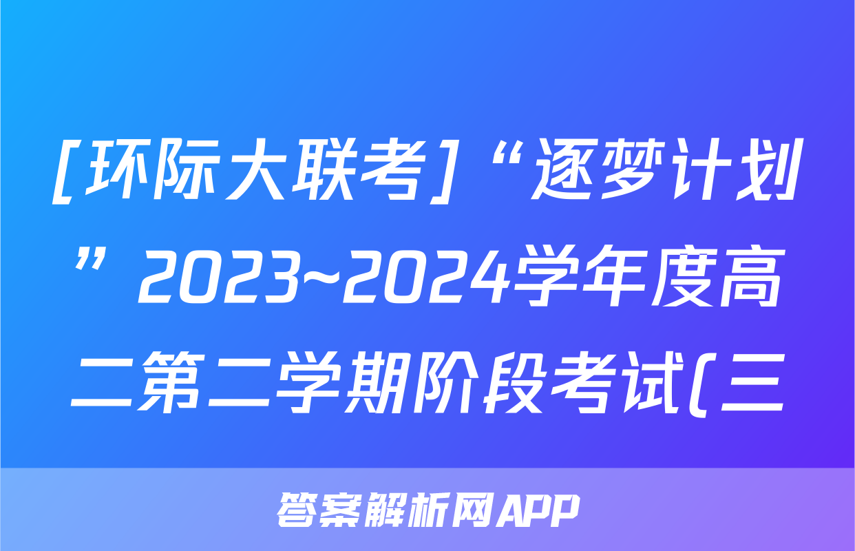 [环际大联考]“逐梦计划”2023~2024学年度高二第二学期阶段考试(三)3答案(化学)正在持续更新,目前2026天舟高考答案网为大家整理了相关试题及答案,供大家查缺补漏,高效提升成绩。