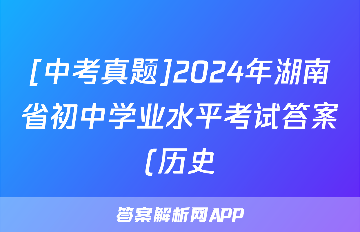 [中考真题]2024年湖南省初中学业水平考试答案(历史)正在持续更新,目前2026天舟高考答案网为大家整理了相关试题及答案,供大家查缺补漏,高效提升成绩。