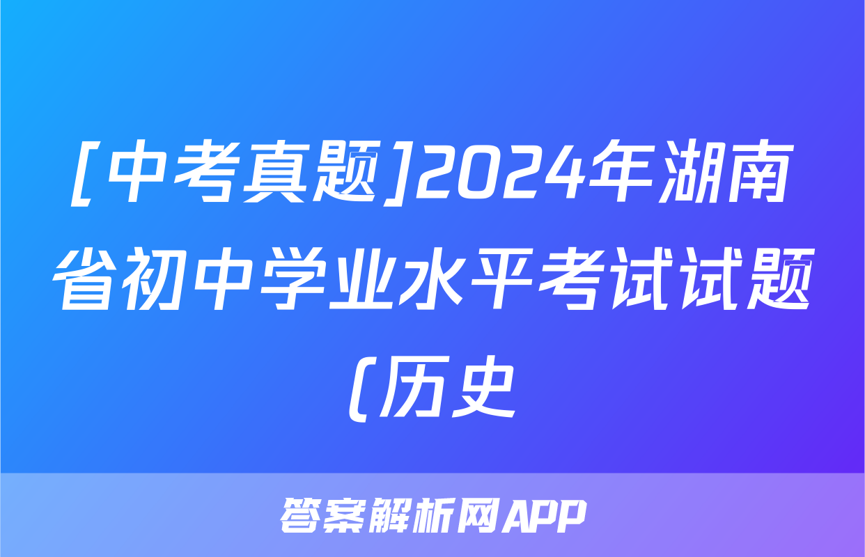 [中考真题]2024年湖南省初中学业水平考试试题(历史)正在持续更新,目前2026天舟高考答案网为大家整理了相关试题及答案,供大家查缺补漏,高效提升成绩。