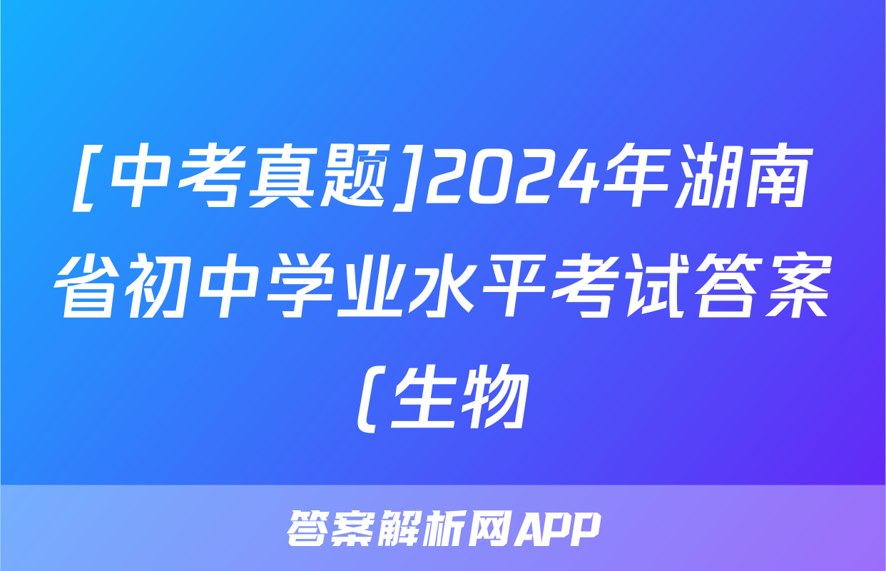 [中考真题]2024年湖南省初中学业水平考试答案(生物)正在持续更新,目前2026天舟高考答案网为大家整理了相关试题及答案,供大家查缺补漏,高效提升成绩。