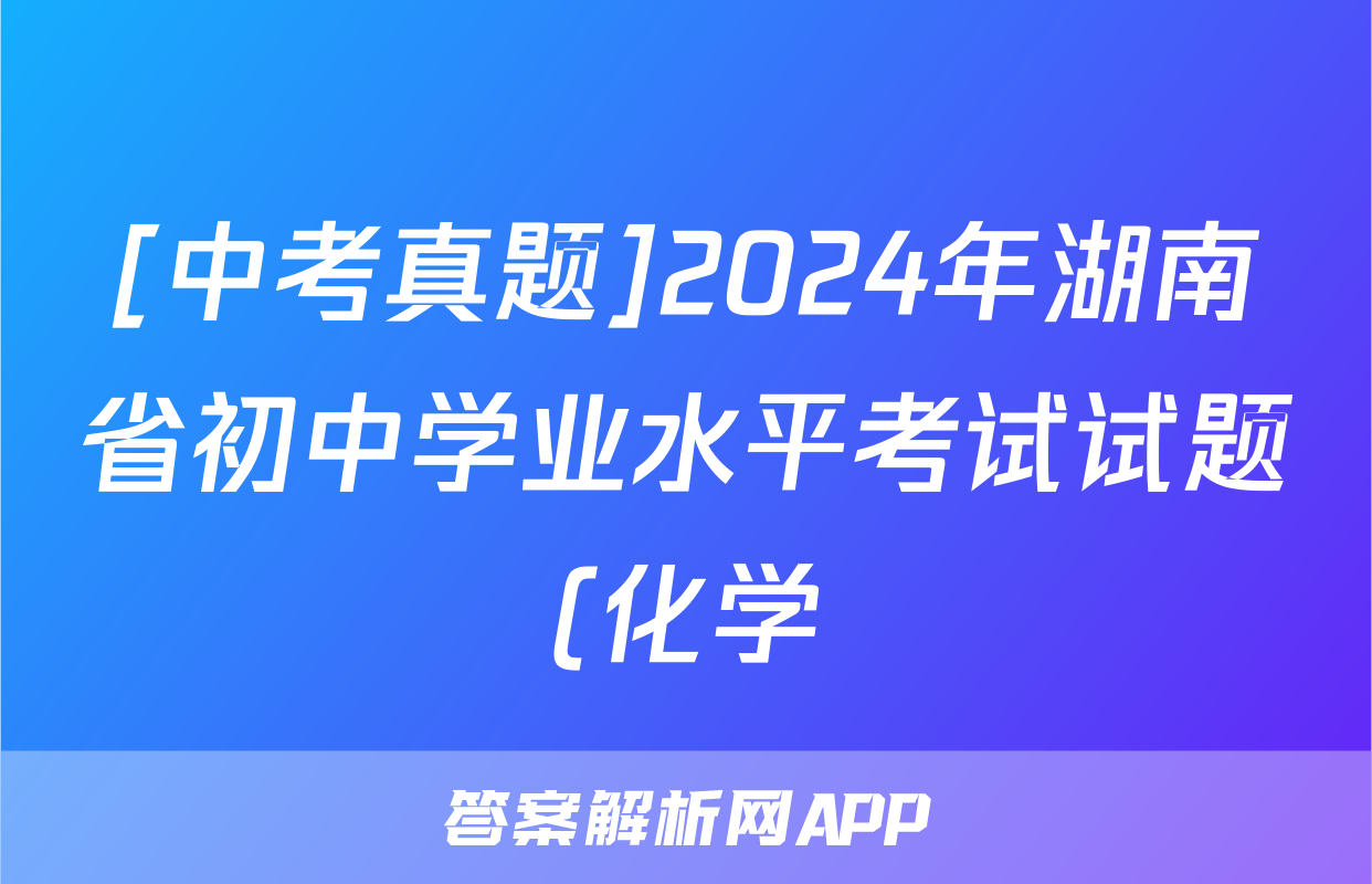 [中考真题]2024年湖南省初中学业水平考试试题(化学)正在持续更新,目前2026天舟高考答案网为大家整理了相关试题及答案,供大家查缺补漏,高效提升成绩。