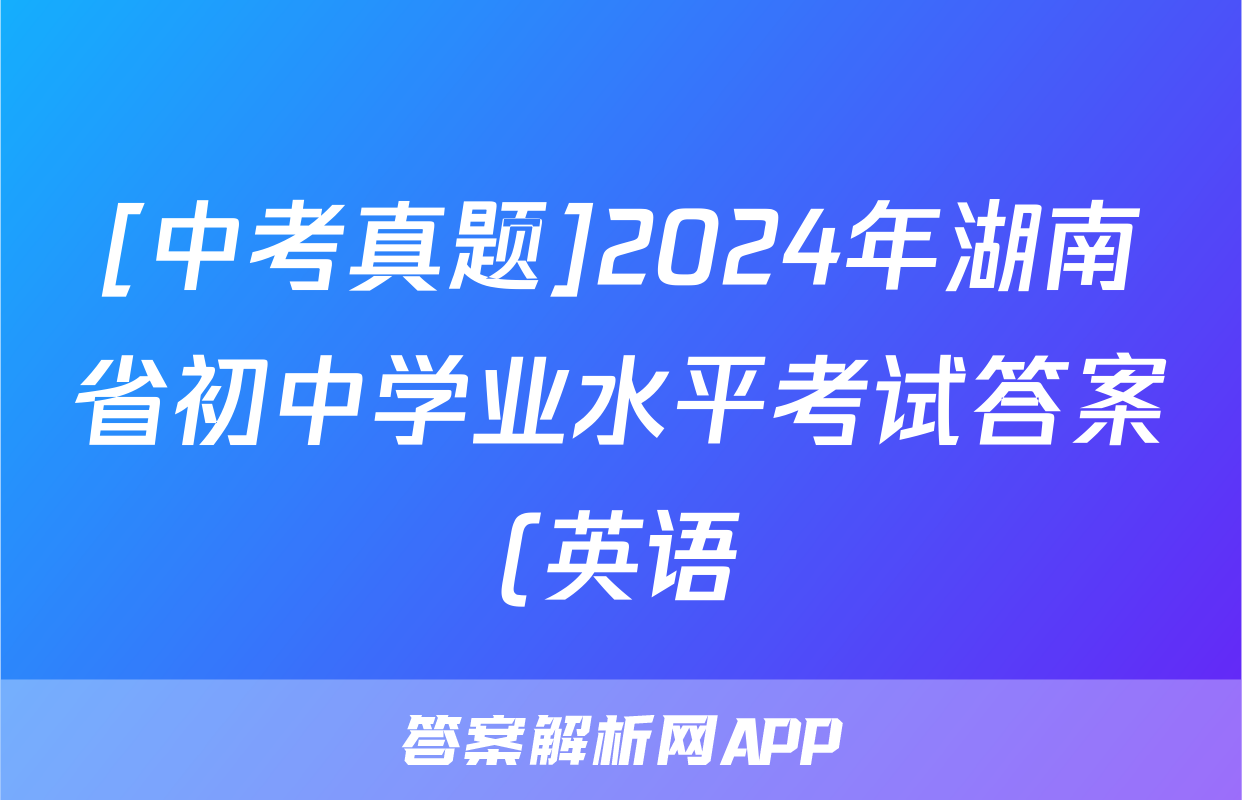 [中考真题]2024年湖南省初中学业水平考试答案(英语)正在持续更新,目前2026天舟高考答案网为大家整理了相关试题及答案,供大家查缺补漏,高效提升成绩。
