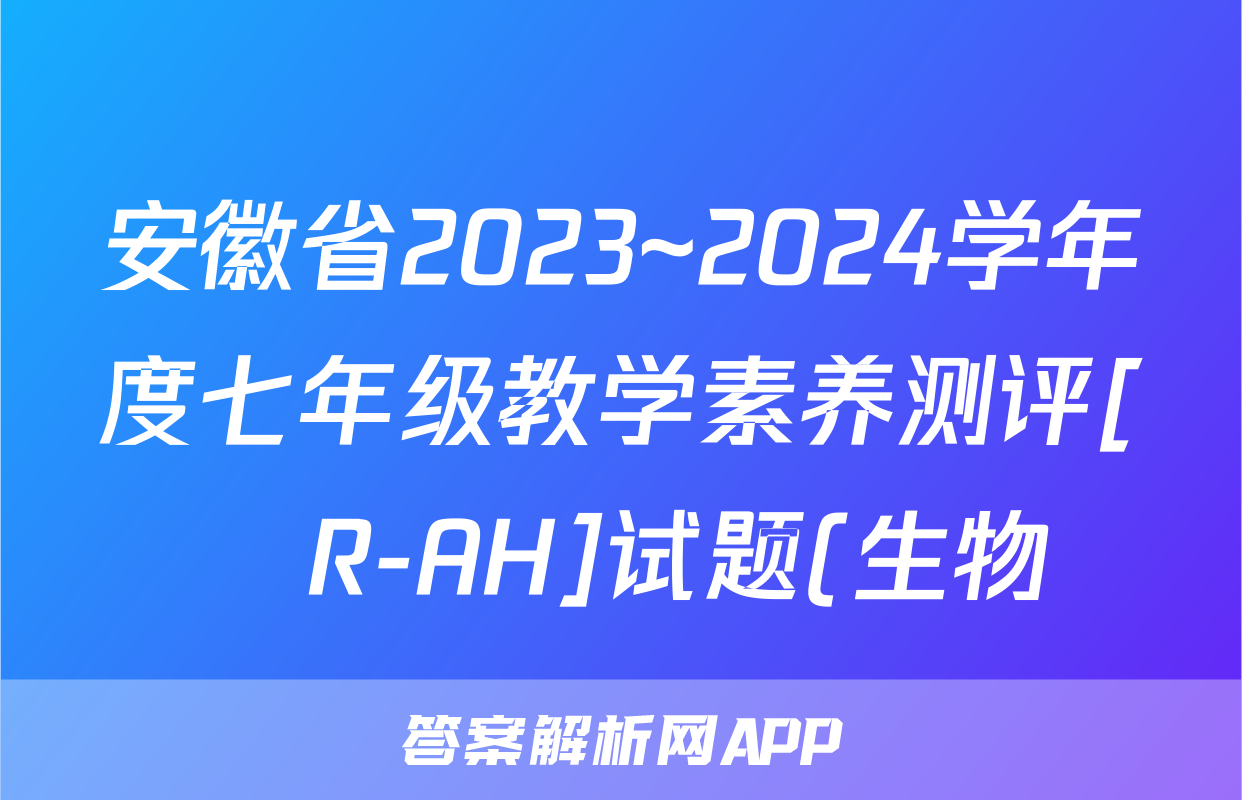 安徽省2023~2024学年度七年级教学素养测评[☐R-AH]试题(生物)正在持续更新,目前2026天舟高考答案网为大家整理了相关试题及答案,供大家查缺补漏,高效提升成绩。