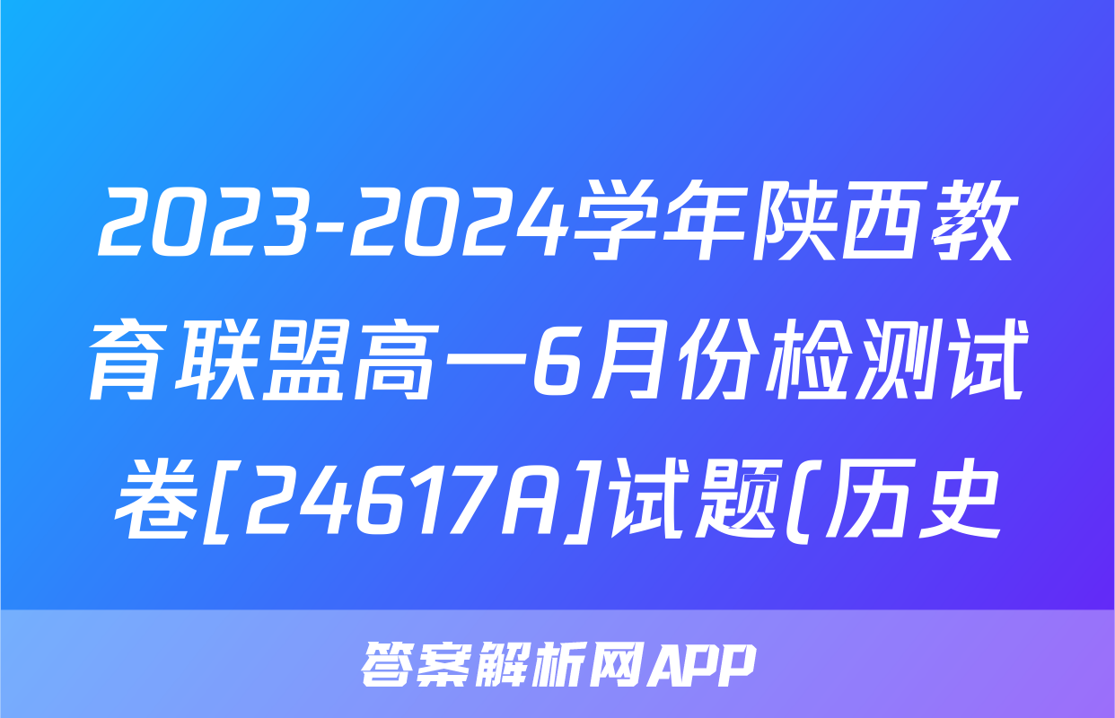 2023-2024学年陕西教育联盟高一6月份检测试卷[24617A]试题(历史)正在持续更新,目前2026天舟高考答案网为大家整理了相关试题及答案,供大家查缺补漏,高效提升成绩。