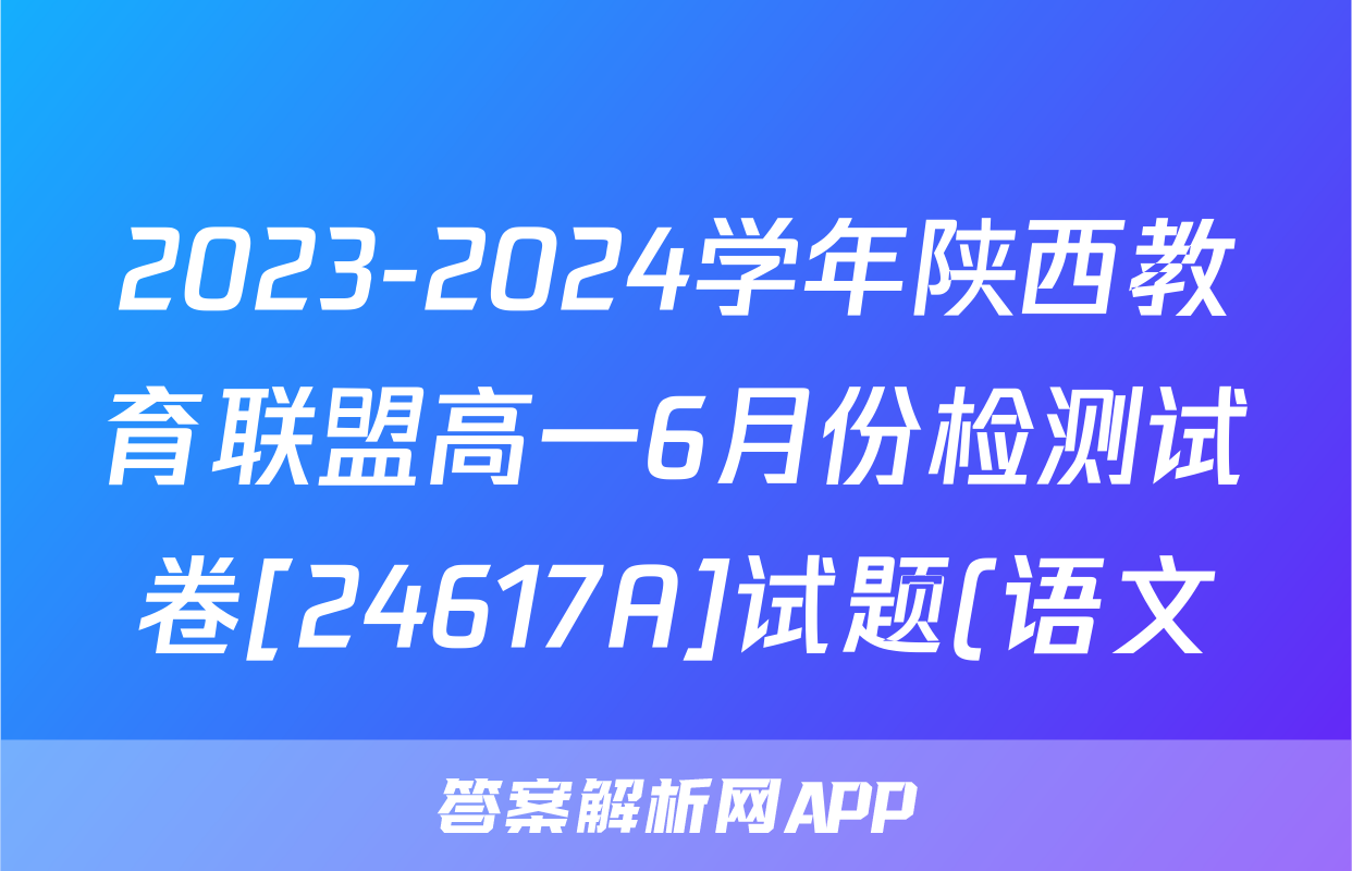 2023-2024学年陕西教育联盟高一6月份检测试卷[24617A]试题(语文)正在持续更新,目前2026天舟高考答案网为大家整理了相关试题及答案,供大家查缺补漏,高效提升成绩。
