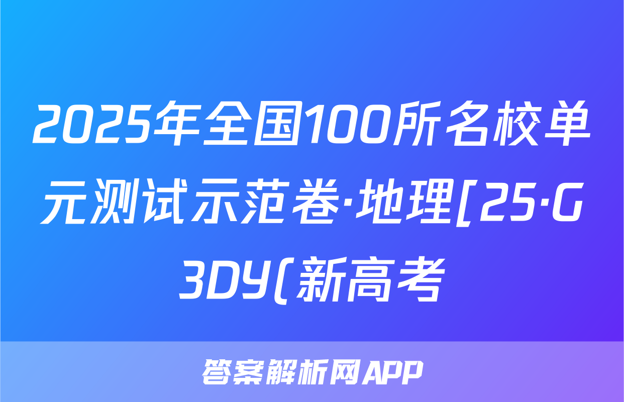 2025年全国100所名校单元测试示范卷·地理[25·G3DY(新高考)·地理-XJB-必考-QG](二) 第二单元 岩石圈与地表形态正在持续更新,目前2026天舟高考答案网为大家整理了相关试题及答案,供大家查缺补漏,高效提升成绩。