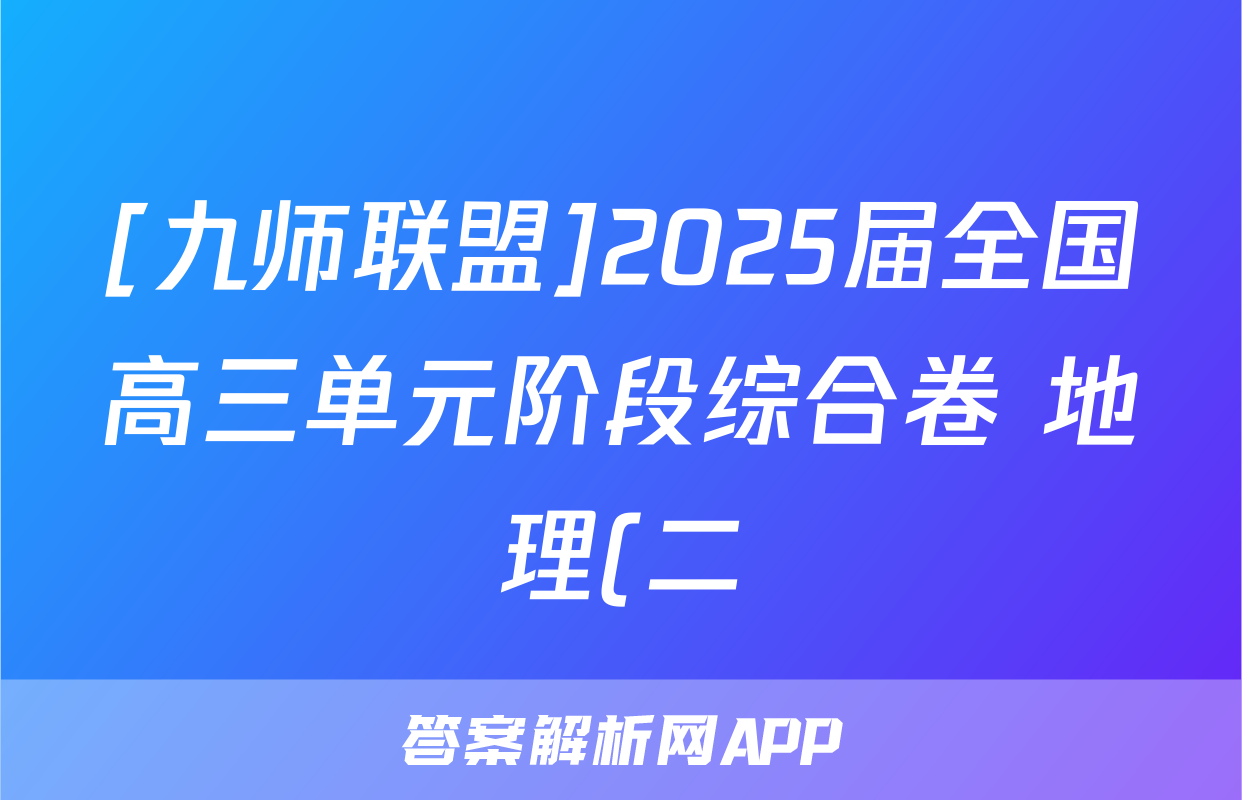 [九师联盟]2025届全国高三单元阶段综合卷 地理(二)2答案正在持续更新,目前2026天舟高考答案网为大家整理了相关试题及答案,供大家查缺补漏,高效提升成绩。