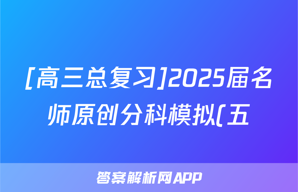 [高三总复习]2025届名师原创分科模拟(五)5生物(XS5)答案正在持续更新,目前2026天舟高考答案网为大家整理了相关试题及答案,供大家查缺补漏,高效提升成绩。