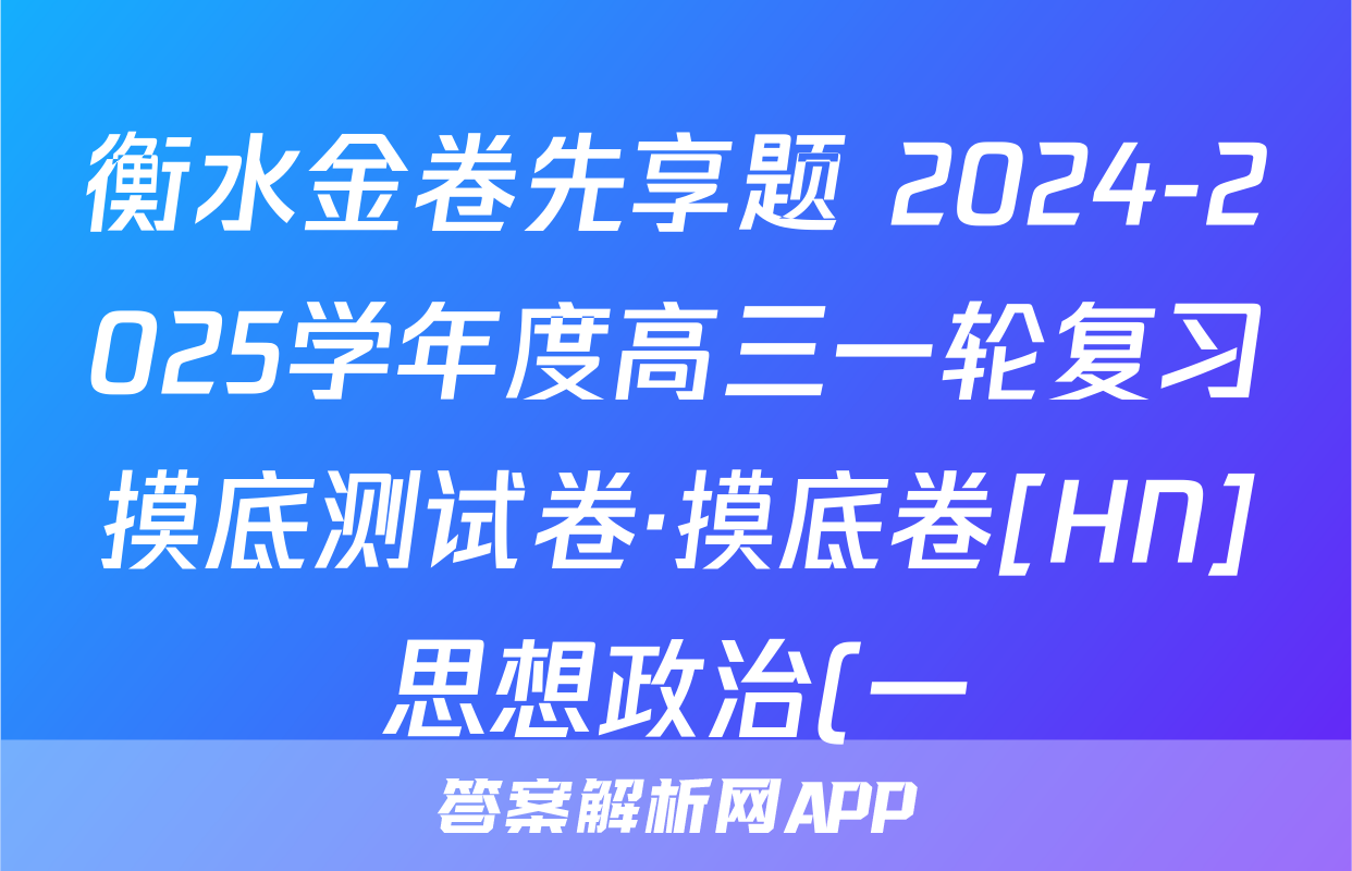 衡水金卷先享题 2024-2025学年度高三一轮复习摸底测试卷·摸底卷[HN]思想政治(一)1试题正在持续更新,目前2026天舟高考答案网为大家整理了相关试题及答案,供大家查缺补漏,高效提升成绩。