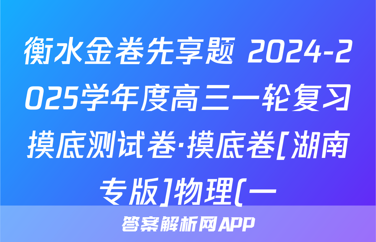 衡水金卷先享题 2024-2025学年度高三一轮复习摸底测试卷·摸底卷[湖南专版]物理(一)1答案正在持续更新,目前2026天舟高考答案网为大家整理了相关试题及答案,供大家查缺补漏,高效提升成绩。