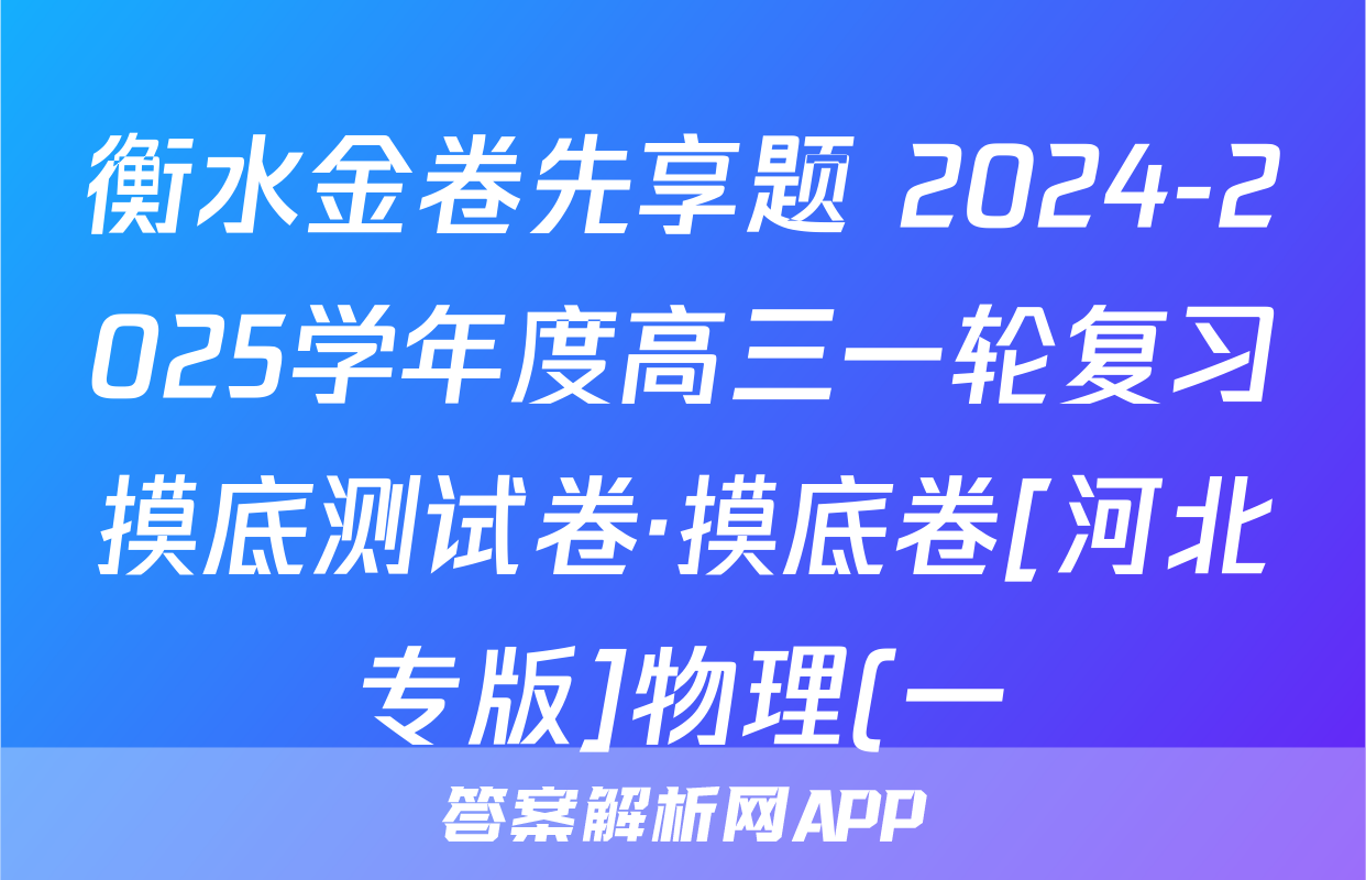 衡水金卷先享题 2024-2025学年度高三一轮复习摸底测试卷·摸底卷[河北专版]物理(一)1试题正在持续更新,目前2026天舟高考答案网为大家整理了相关试题及答案,供大家查缺补漏,高效提升成绩。