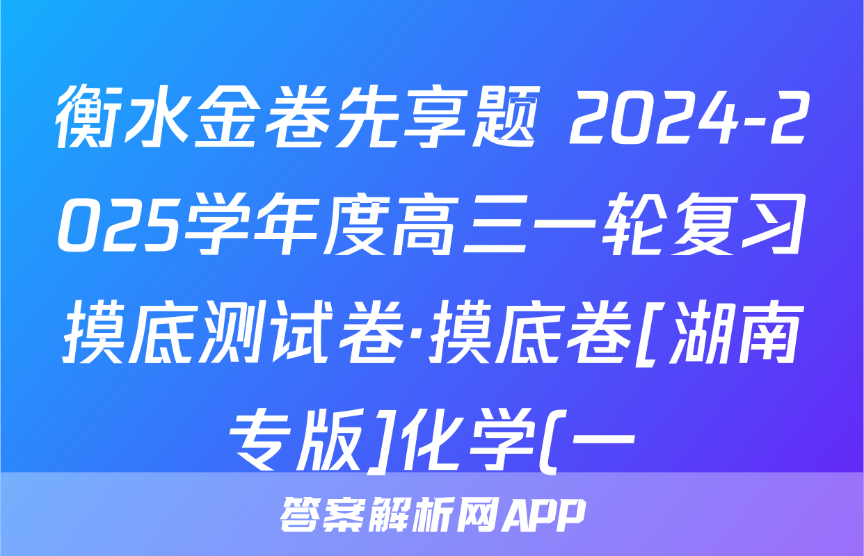 衡水金卷先享题 2024-2025学年度高三一轮复习摸底测试卷·摸底卷[湖南专版]化学(一)1答案正在持续更新,目前2026天舟高考答案网为大家整理了相关试题及答案,供大家查缺补漏,高效提升成绩。