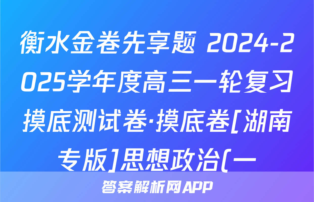 衡水金卷先享题 2024-2025学年度高三一轮复习摸底测试卷·摸底卷[湖南专版]思想政治(一)1答案正在持续更新,目前2026天舟高考答案网为大家整理了相关试题及答案,供大家查缺补漏,高效提升成绩。