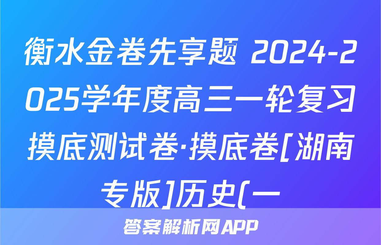 衡水金卷先享题 2024-2025学年度高三一轮复习摸底测试卷·摸底卷[湖南专版]历史(一)1试题正在持续更新,目前2026天舟高考答案网为大家整理了相关试题及答案,供大家查缺补漏,高效提升成绩。