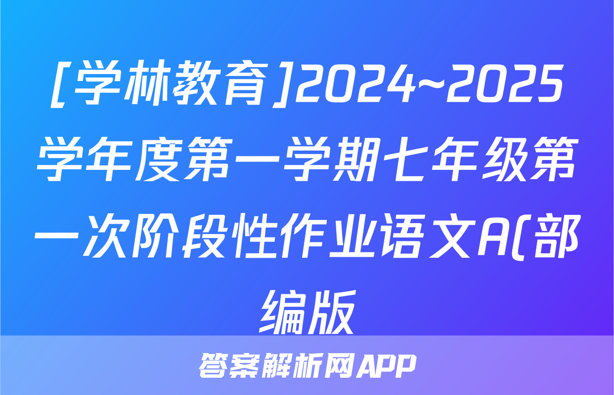 [学林教育]2024~2025学年度第一学期七年级第一次阶段性作业语文A(部编版)试题正在持续更新,目前2026天舟高考答案网为大家整理了相关试题及答案,供大家查缺补漏,高效提升成绩。