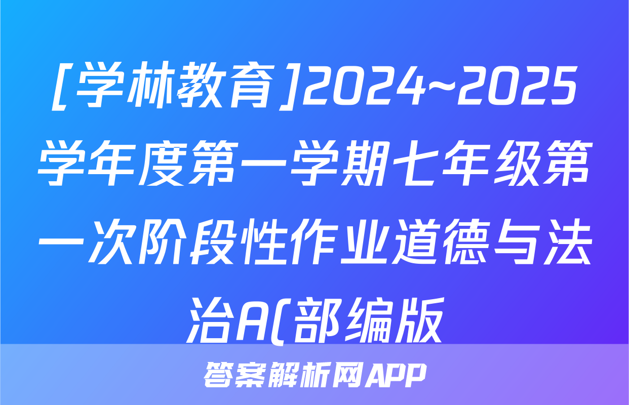 [学林教育]2024~2025学年度第一学期七年级第一次阶段性作业道德与法治A(部编版)试题正在持续更新,目前2026天舟高考答案网为大家整理了相关试题及答案,供大家查缺补漏,高效提升成绩。