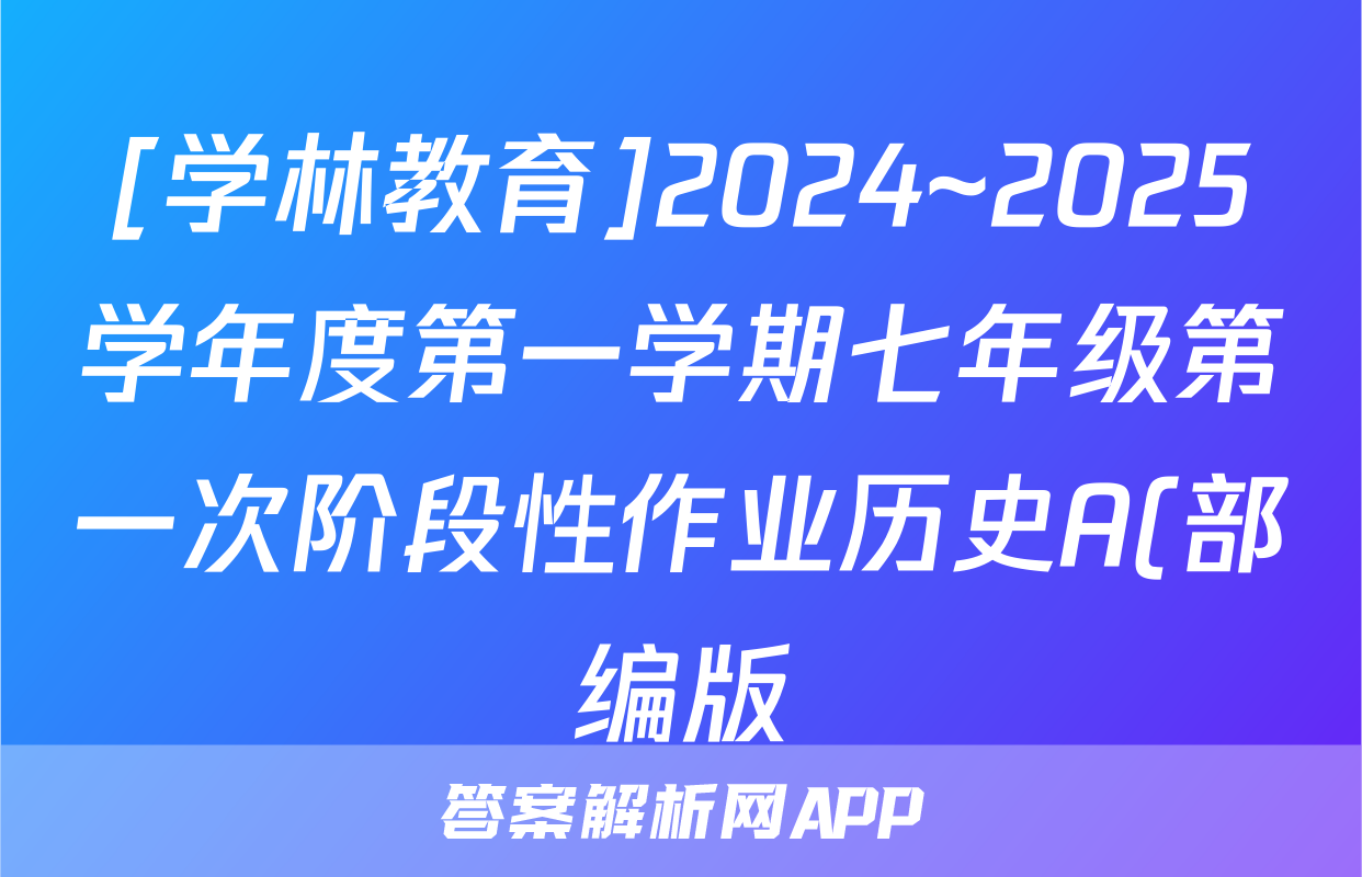 [学林教育]2024~2025学年度第一学期七年级第一次阶段性作业历史A(部编版)试题正在持续更新,目前2026天舟高考答案网为大家整理了相关试题及答案,供大家查缺补漏,高效提升成绩。