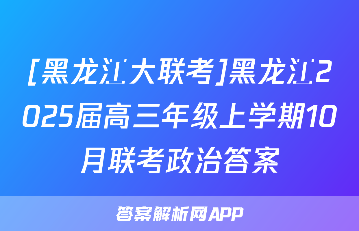 [黑龙江大联考]黑龙江2025届高三年级上学期10月联考政治答案正在持续更新,目前2026天舟高考答案网为大家整理了相关试题及答案,供大家查缺补漏,高效提升成绩。