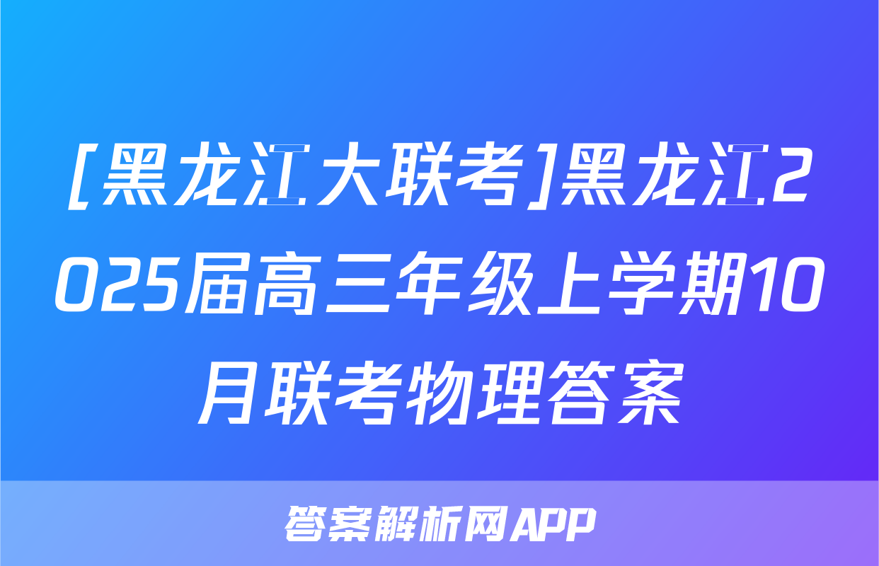[黑龙江大联考]黑龙江2025届高三年级上学期10月联考物理答案正在持续更新,目前2026天舟高考答案网为大家整理了相关试题及答案,供大家查缺补漏,高效提升成绩。