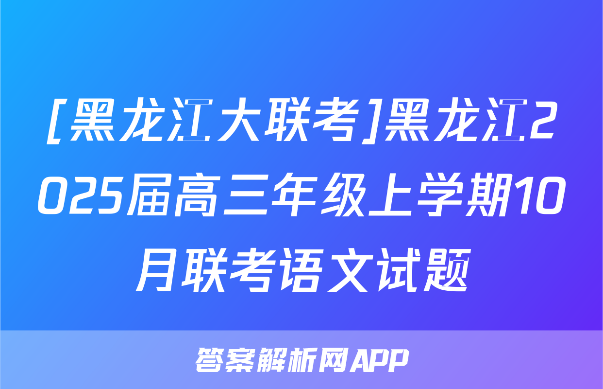 [黑龙江大联考]黑龙江2025届高三年级上学期10月联考语文试题正在持续更新,目前2026天舟高考答案网为大家整理了相关试题及答案,供大家查缺补漏,高效提升成绩。