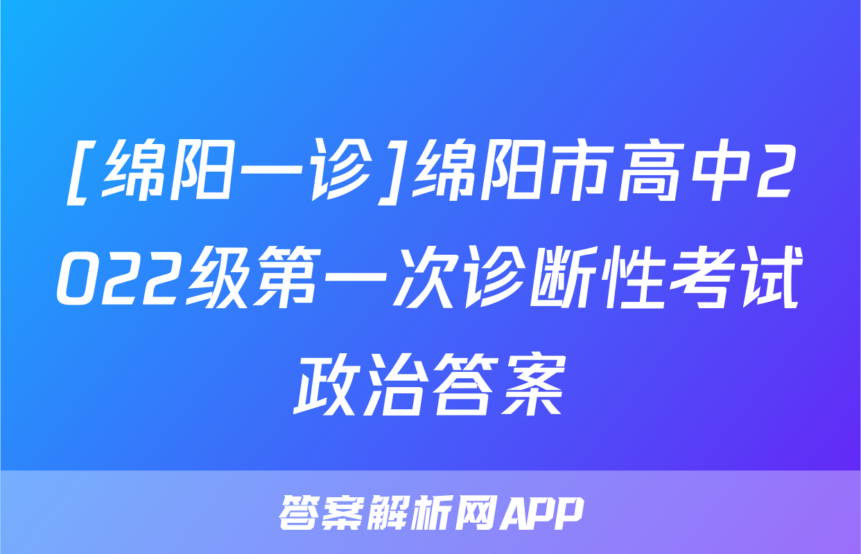 [绵阳一诊]绵阳市高中2022级第一次诊断性考试政治答案正在持续更新,目前2026天舟高考答案网为大家整理了相关试题及答案,供大家查缺补漏,高效提升成绩。