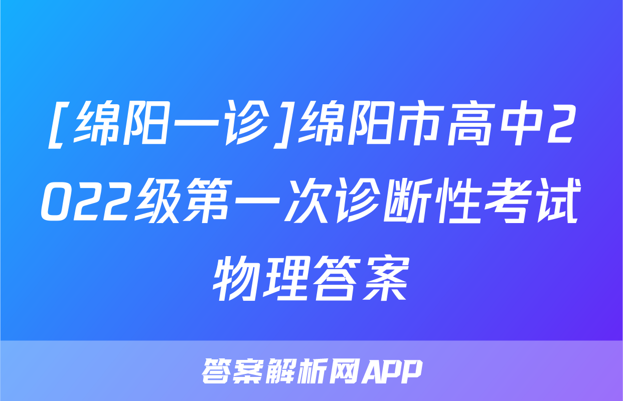 [绵阳一诊]绵阳市高中2022级第一次诊断性考试物理答案正在持续更新,目前2026天舟高考答案网为大家整理了相关试题及答案,供大家查缺补漏,高效提升成绩。