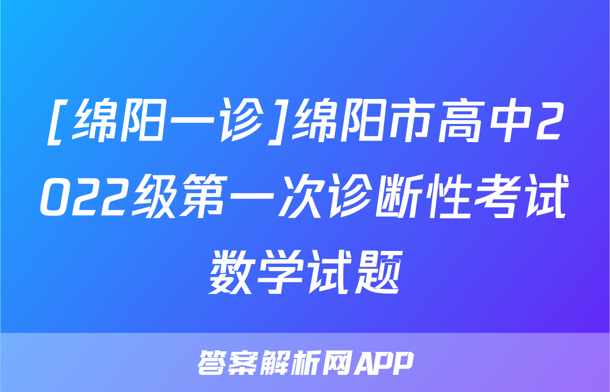[绵阳一诊]绵阳市高中2022级第一次诊断性考试数学试题正在持续更新,目前2026天舟高考答案网为大家整理了相关试题及答案,供大家查缺补漏,高效提升成绩。