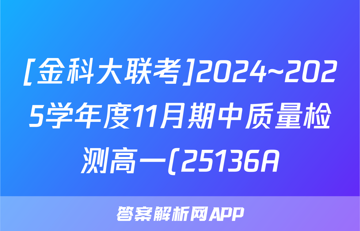 [金科大联考]2024~2025学年度11月期中质量检测高一(25136A)历史答案正在持续更新,目前2026天舟高考答案网为大家整理了相关试题及答案,供大家查缺补漏,高效提升成绩。